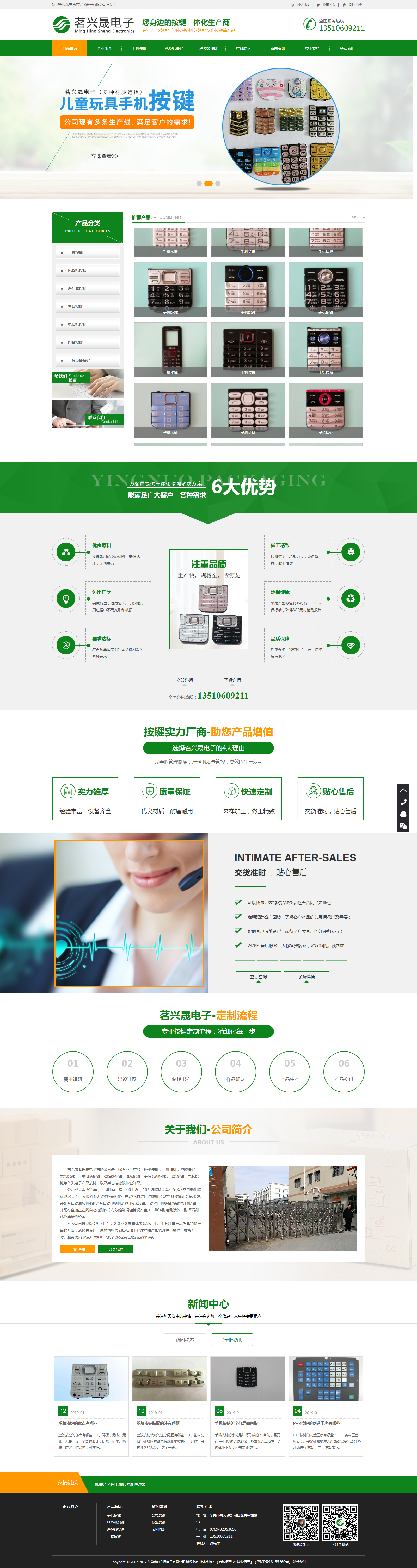 東莞市茗興晟電子有限公司是一家專業(yè)生產(chǎn)加工P+R按鍵,手機按鍵,塑膠按鍵,發(fā)光按鍵,車載電話按鍵,遙控器按鍵,透光按鍵,手持設備按鍵,門禁按鍵,點膠按鍵等各類電子產(chǎn)品按鍵,以及其它硅橡膠按鍵制品。 公司成立至今15年,公司擁有廠房5000平方 ,10萬級噴涂無塵車間,有3條自動化噴涂線,及兩臺手動噴涂柜.UV紫外光固化生產(chǎn)設備.有進口鐳雕機6臺,有4條按鍵組裝流水線.并配有自動點膠機4臺,還有自動印刷機及移印機各3臺.手動絲印機多臺.按鍵沖壓機4臺,并配有全鍵盤在線自動檢測儀(有效控制混鍵情況產(chǎn)生),RCA耐磨測試儀,耐酒精測試儀等檢測設備。 本公司已通過ISO9001:2008質量體系認證。本廠十分注重產(chǎn)品質量和新產(chǎn)品的開發(fā),從模具設計、原材料檢驗到各項加工程序均按嚴格管理進行操作、交貨及時、服務優(yōu)良,深受廣大客戶的好評,歡迎各位朋友前來指導。